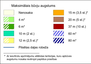 - gada Teritorijas plānojuma augstumu kartē[5] redzams, ka visiem zemesgabaliem ir bijuši 12 m (dzeltens)